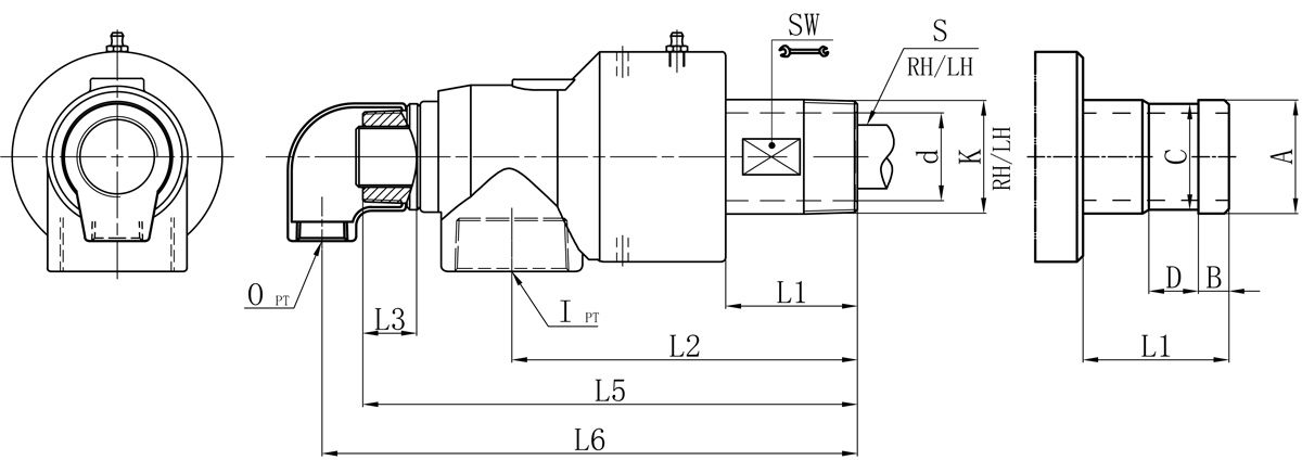 | Model | K | I | O | S | S1 | d | L1 | L2 | L3 | L5 | L6 | SW | 法蘭式外管尺寸對(duì)照表 | |||