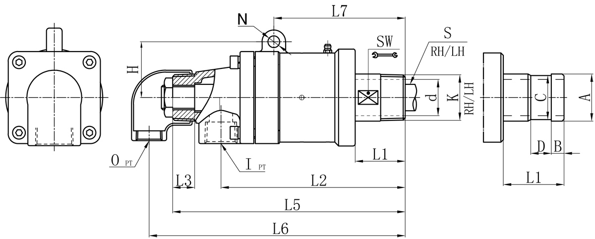 | Model | K | I | O | S | d | L1 | L2 | L3 | L5 | L6 | L7 | N | H | SW | 法蘭式外管尺寸對照表 | |||