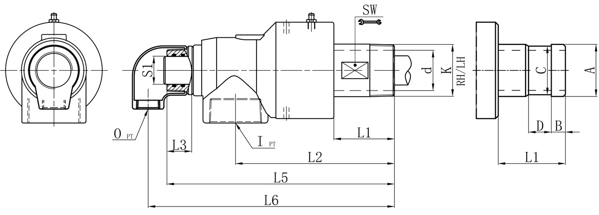 | Model | K | I | O | S | S1 | d | L1 | L2 | L3 | L5 | L6 | SW | 法蘭式外管尺寸對(duì)照表 | |||